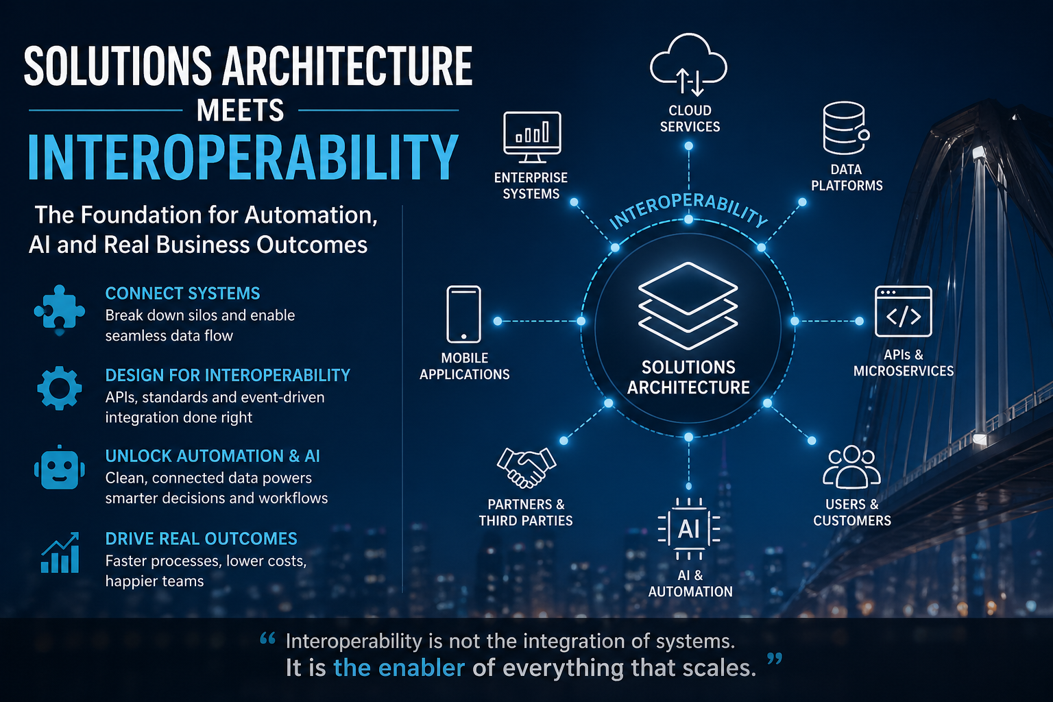 #SolutionsArchitecture #Interoperability #SystemIntegration #APIDesign #EventDrivenArchitecture #Automation #ArtificialIntelligence #DataEngineering #CloudArchitecture #SoftwareEngineering #DigitalTransformation #TechLeadership #EnterpriseArchitecture